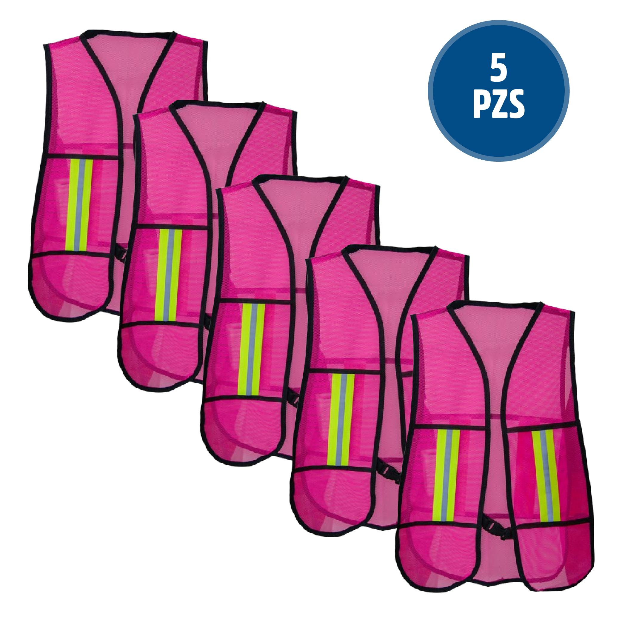 Los chalecos de seguridad tienen como finalidad la visibilidad en condiciones de baja luz y espacios con alto tránsito. al ser más visible reduce las posibilidades de accidentes. *Unidad: Paquete 5pz *Cuenta con un cierre de broche que facilita su uso y ajuste, adaptándose a distintas tallas. *Su diseño de malla proporciona una ventilación optima, permitiendo la circulación de aire y manteniendo el confort. *Color: Rosa.
