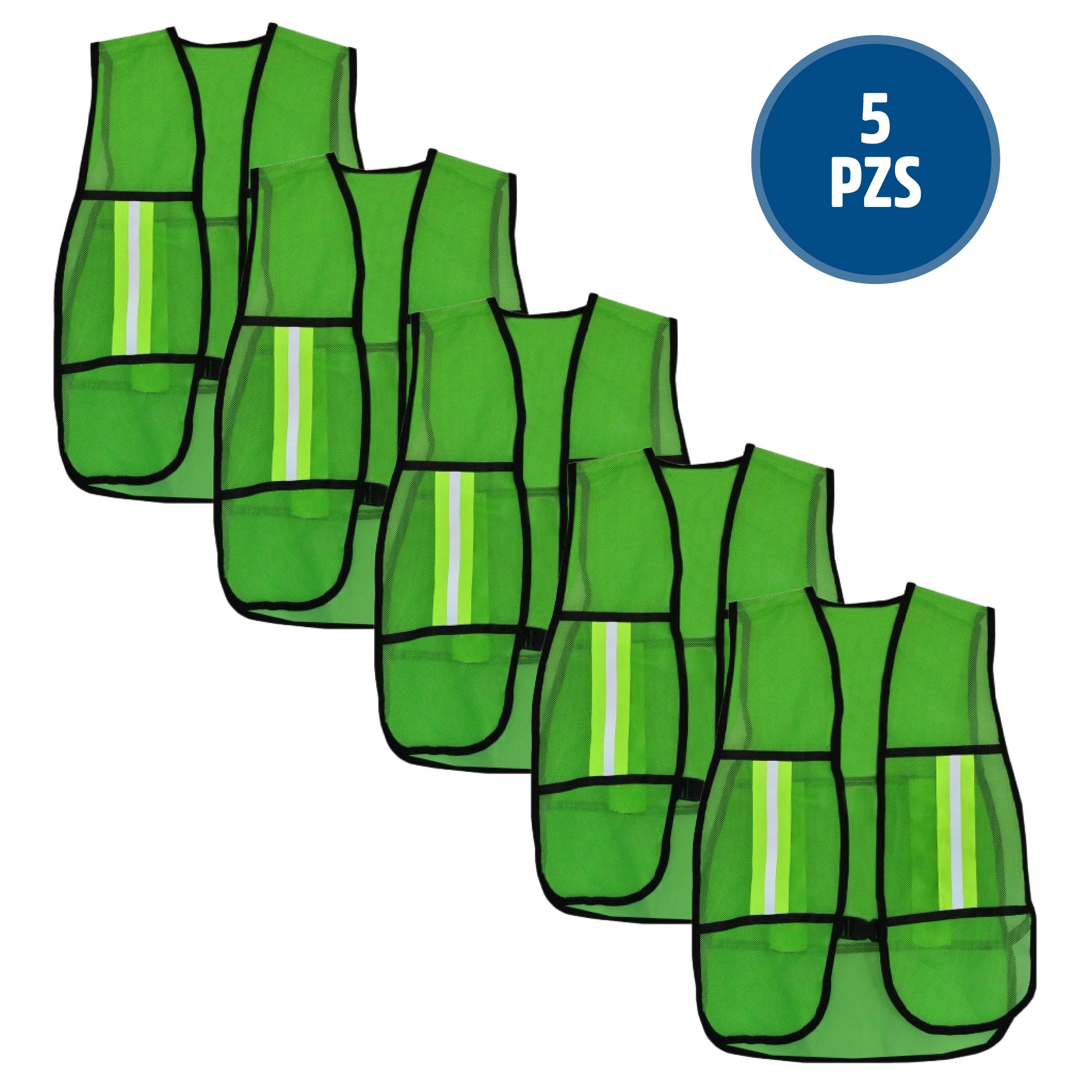 Los chalecos de seguridad tienen como finalidad la visibilidad en condiciones de baja luz y espacios con alto tránsito. al ser más visible reduce las posibilidades de accidentes. *Unidad: Paquete 5pz *Cuenta con un cierre de broche que facilita su uso y ajuste, adaptándose a distintas tallas. *Su diseño de malla proporciona una ventilación optima, permitiendo la circulación de aire y manteniendo el confort. *Color: Verde.