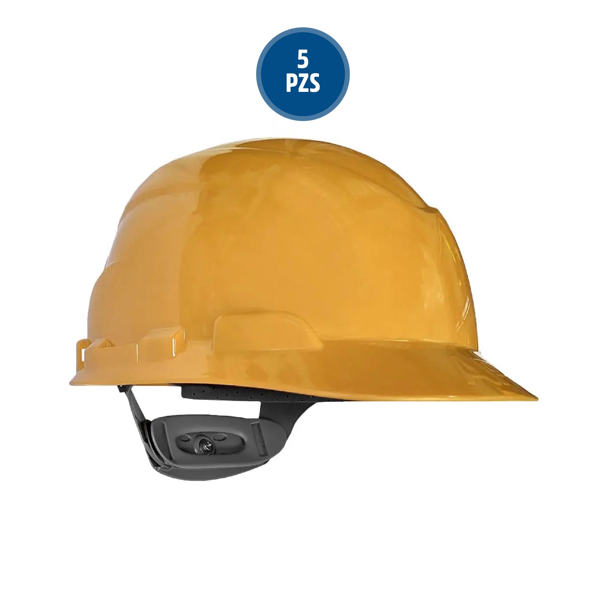 Casco de seguridad diseñado para proteger la cabeza contra impactos, brindando seguridad y comodidad en entornos de trabajo. *Unidad: Paquete 5pz *Diseñado para protegerte contra impactos, golpes y tensión eléctrica. *Ajuste con matraca *Fabricado con material resistente y duradero *Diseño ergonómico para mayor comodidad *Ideal para construcción, industria y trabajos generales *Color: Amarillo