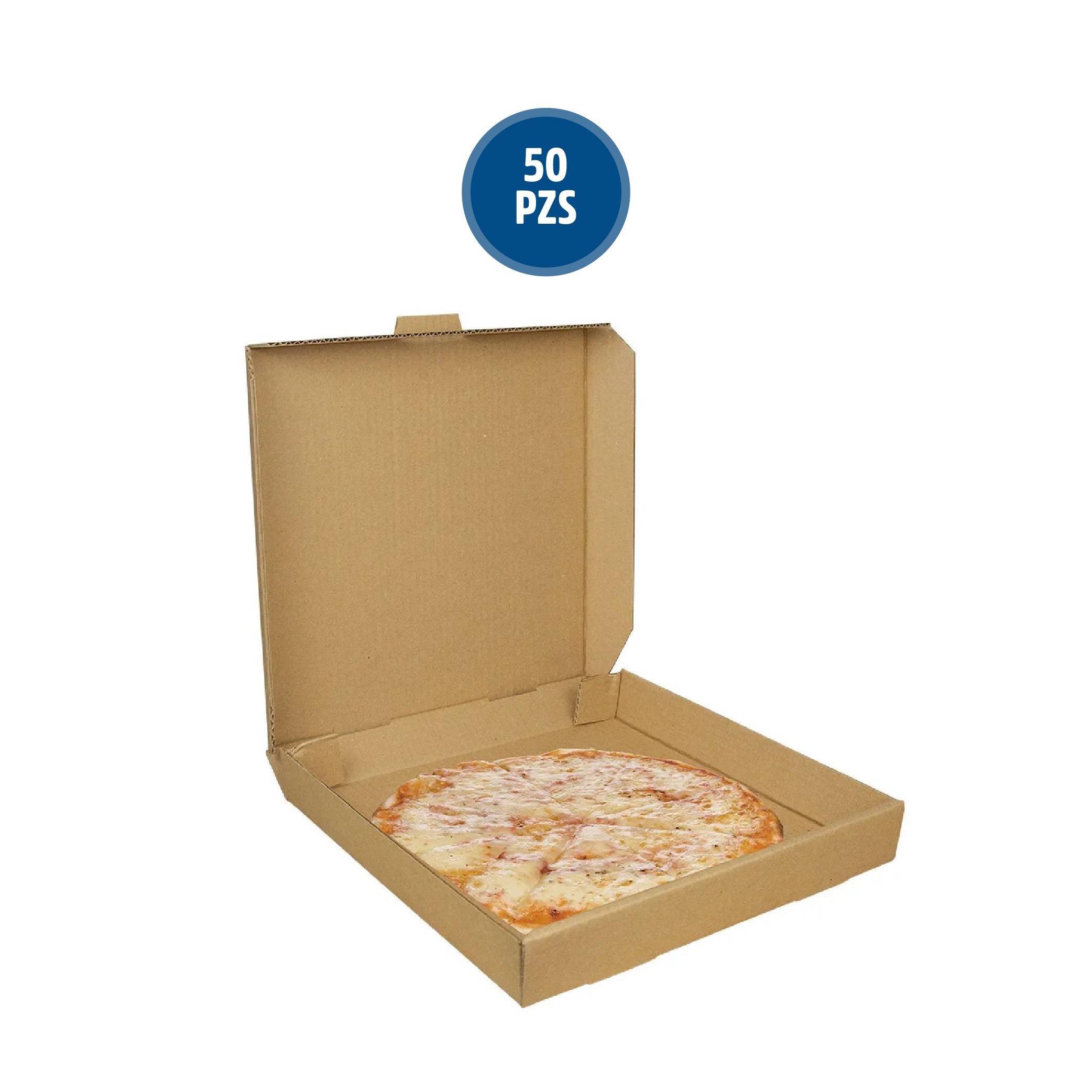 Caja de pizza fabricada en cartón resistente y de alta calidad, diseñada para conservar el calor y la frescura del producto. Su estructura protege la pizza durante el transporte, evitando deformaciones y derrames. Ideal para pizzerías, restaurantes y servicios de entrega a domicilio, ofreciendo una presentación higiénica, práctica y confiable. *Unidad: paquete 50pz *Medida: 12" *Resistencia: 23 ect *Flauta: c *Color: kraft