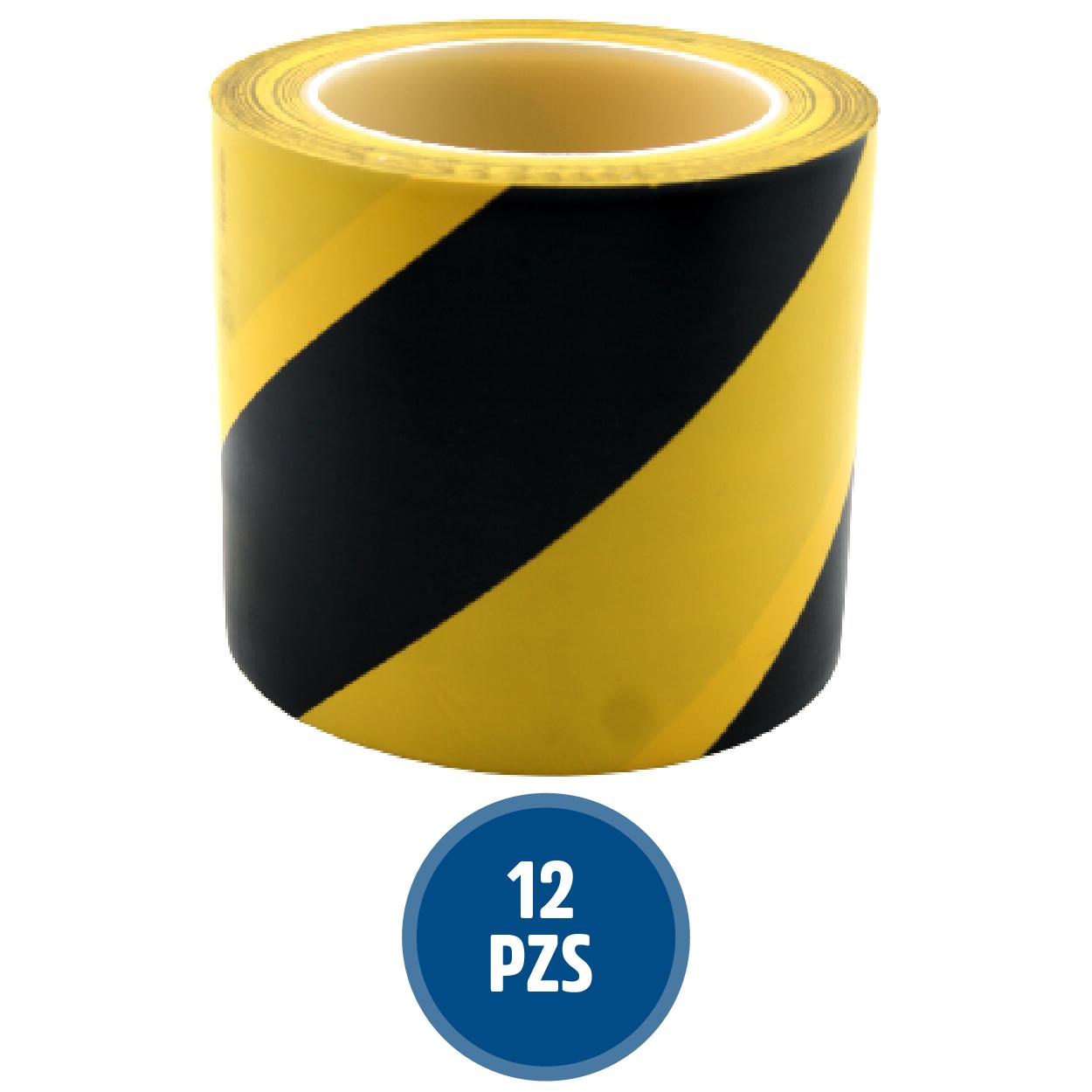 La cinta de marcaje delimita zonas en entornos industriales o comerciales, señalando peligros temporales o áreas de alto tráfico para mejorar la seguridad y organización. *Unidad: 12 piezas *Material: PVC *Ancho: 96mm *Largo: 33 metros *Color: amarillo/negro